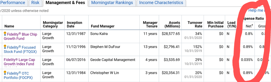 The Fidelity® Large Cap Growth Index Fund, FSPGX, is an excellent mutual fund to suit your large-cap needs. The fund "seeks to provide investment results that correspond to the total return of stocks of large capitalization U.S. companies." FSPGX is extremely cheap. It has an expense ratio of 0.035%! Check out the table below (data as of 02/29/2020. NAV as of 03/30/2020. Source Fidelity®)
